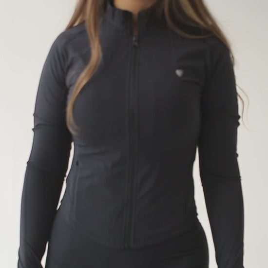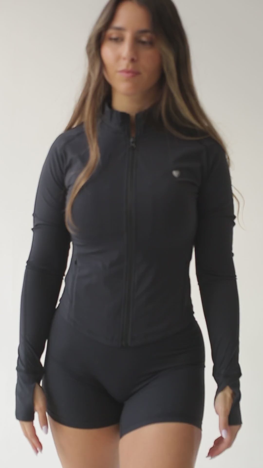 The Sculpt Jacket is the perfect blend of beauty and functionality, designed with a flattering length that rests at the ideal point to enhance your silhouette. Its tailored shape accentuates a woman’s curves, offering a sleek look. Featuring thumbholes for added comfort and side pockets that can securely hold an iPhone, keys, or cards, this jacket is as practical as it is stylish. Perfect for workouts, errands, or layering on the go.